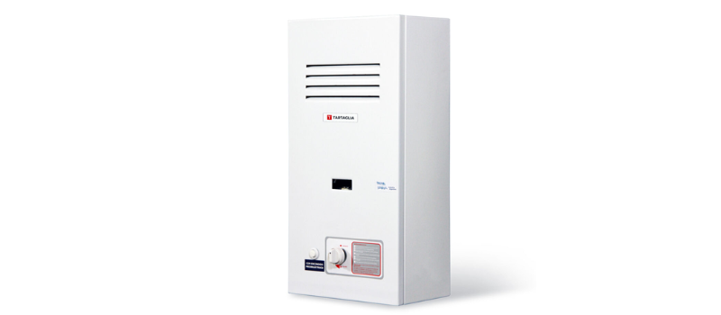 This type of heater uses the combustion of butane gas as an energy source to heat the water. The process begins when a hot water tap is opened: a sensor detects the flow and activates the internal burner. The butane gas, stored in cylinders, mixes with the air and ignites, generating a flame that transfers heat through a metal exchanger.