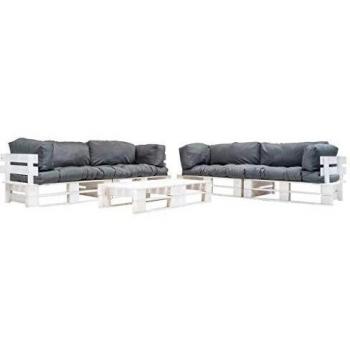 6-tlg. Garten-Paletten-Sofagarnitur mit grauen Kissen
