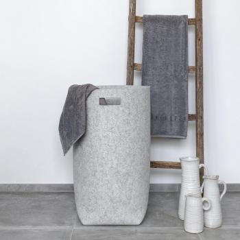 Hey Sign - Wäschekorb in Anthrazitfarbe mit Griffen aus Eichenholz