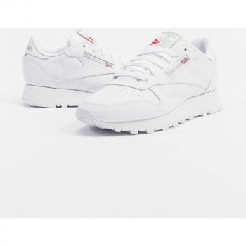 Weißes Reebok Classic Leather in EU 34,5, gefertigt aus strapazierfähigem Leder und atmungsaktivem Tuchfutter für angenehmen Tragekomfort. Die leichte synthetische Sohle bietet rutschfesten Halt bei jedem Kinderabenteuer.
