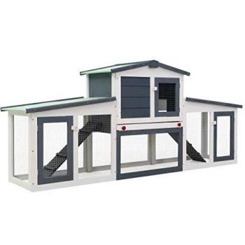 Vidaxl Outdoor Large Rabbit Hutch Grey and White 204x45x85 cm Wood