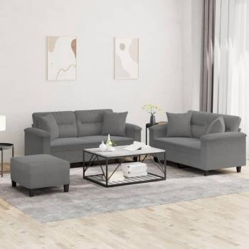 3 Piece Dark Grey Microfiber Sofa Set with Cushions