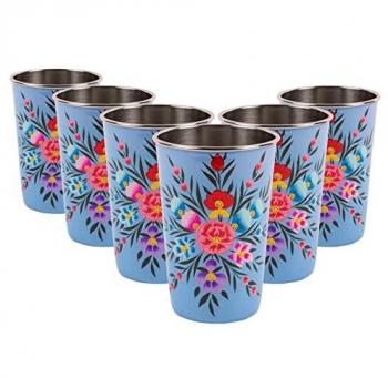 Ocean Pansy Stainless Steel Picnic Tumblers - 400ml - Set of 6 - Reusable Camping Drinkware
