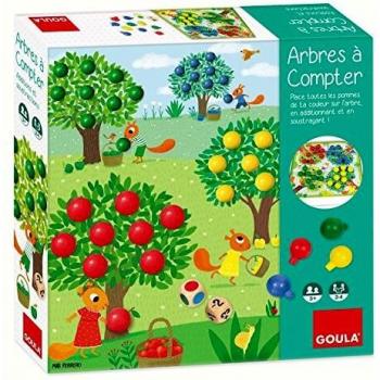 Jeu éducatif Arbres à Compter - Goula avec Pommes en Bois et Dés