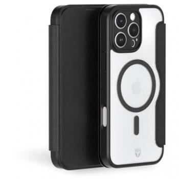 Étui folio noir robuste pour iPhone 15 Pro, doté d’un aimant MagSafe puissant et d’un porte-cartes intégré. Sa coque rigide protège contre chocs sans alourdir l’appareil, tandis que son design épuré conserve un profil mince et élégant.