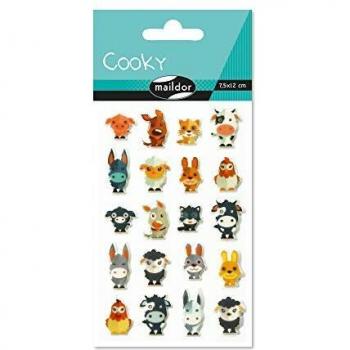Maildor CY022O - Un sachet de gommettes 3D Cooky 1 planche 7,5x12cm, Animaux de la ferme (20 stickers)