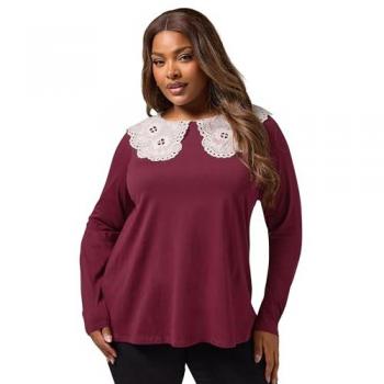 Haut à manches longues avec col en dentelle Yours Curve
