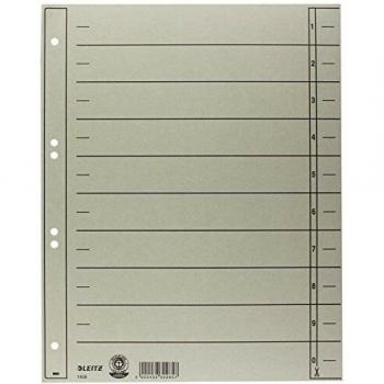 Leitz Numeric Tab Index Carton Gris Intercalaire de Classement - A4 - 6 Feuilles - Portrait