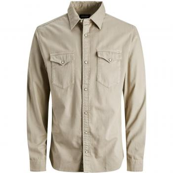 Chemise en jean bleu moyen, coupe slim et ajustée, manches longues à col Kent, boutons simples, tissu coton 100 % avec coutures renforcées pour une durabilité optimale, idéale pour un look casual chic.