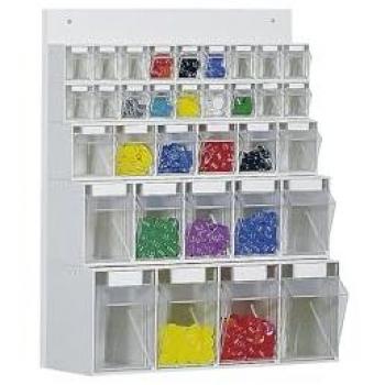 Rangement mural MultiStore, 33 bacs, contenance 76 l, L 600 x P 185 x H 684 mm, avec panneau en bois et polystyrène