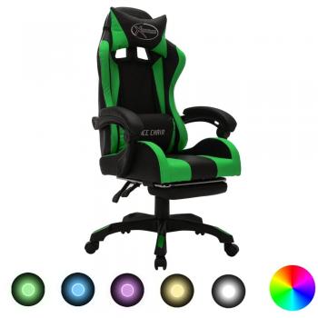 Chaise de Course avec LED RVB Vert et Noir Similicuir