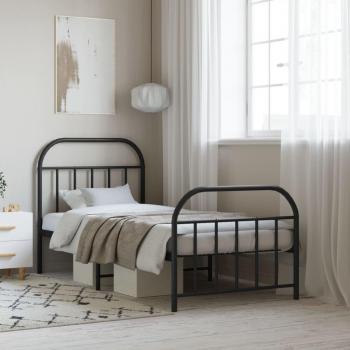 Lit simple en métal, cadre complet, pieds noirs – 90x200 cm