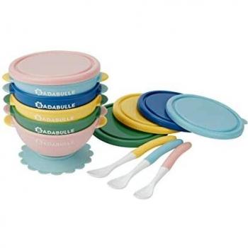 Lot de 5 bols antidérapants 330ml et 3 cuillères souples