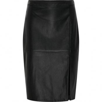 Jupe mi-longue fendue en simili cuir – ONLY – Noir 36