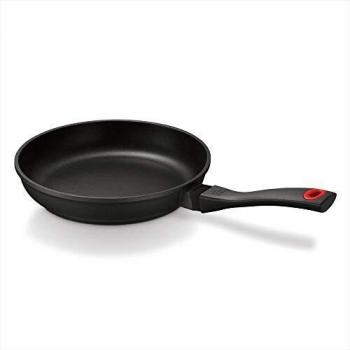 Poêle à blinis Smiley de 27 cm en fonte aluminium noire, design amusant, revêtement antiadhésif, fond épais pour une cuisson homogène et des blinis dorés et réguliers, bord relevé et manche ergonomique pour une manipulation en toute sécurité.