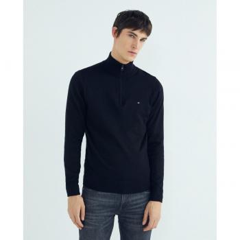 Pull col montant zippé en coton et cachemire noir Tommy Hilfiger