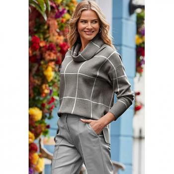 Sweat Sosandar carreaux col bouclé, couleur grise