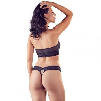 Ensemble séduisant avec soutien-gorge et string ouvert à l'entrejambe Cottelli Collection 2 Pièces Ouvert Chaîne Stimulante, Dentelle Noir - Taille : M - 38