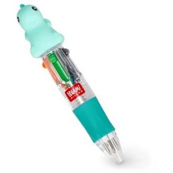 Legami Mini Stylo à Bille 4 Couleurs Mini Magic Rainbow – Encre Vert, Bleu, Orange, Noir – Pointe 1 mm – Poignée Silicone Ergonomique – Diamètre 2,3 cm – Hauteur 10 cm – Dino