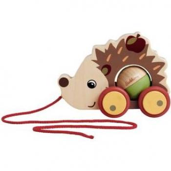 Ein zierliches Birkenholz-Schneckenspielzeug für Kinder ab einem Jahr: Beim Ziehen rollt die Schnecke sanft, während vier bunte Bausteine im Körper stecken bleiben und spielerisch Formen und Farben erkunden lassen.