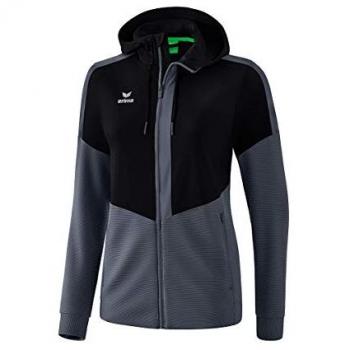 Leichte, atmungsaktive Erima‑Squad‑Kapuzenjacke in Rot für Damen Größe 42. Mit verstellbarer Kapuze und elastischem Bündchen sorgt sie beim Training für Komfort und Stil.
