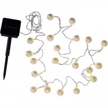 Eine elegante, transparente Solar-Lichterkette mit acht warmweißen LEDs, die bei Dämmerung automatisch leuchten. Sie ist kompakt, energiesparend und ideal für Garten oder Balkon.