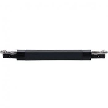 Der URail Flex Verbinder II gleitet flexibel zwischen Schienen und trägt bis zu 1000 W; sein mattes Chrom‑Finish wirkt modern, während das leichte Kunststoffmaterial einfache Montage ermöglicht.