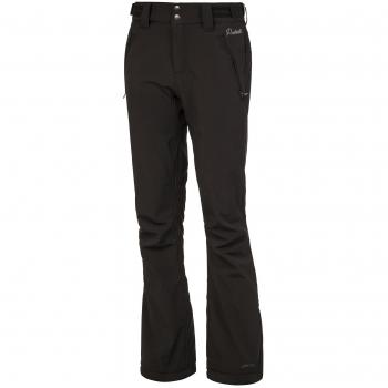 Robuste schwarze Softshell-Hose für Damen, die mit wasserabweisendem Stoff, atmungsaktiver Beschichtung und elastischem Bund punktet. Ideal für aktive Pistenabenteuer.