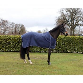 QHP Fleecedecke Abschwitzdecke Basic mit Halsteil Kreuzgurte blau + schwarz (blau)