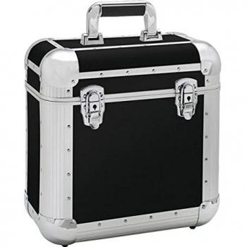 Ein robustes Reloop‑CD‑Case in Schwarz bietet Platz für bis zu 100 Alben, verteilt auf vier stabile Fächer und gesichert durch zwei abschließbare Schnappschlösser – ideal für DJs und Sammler.
