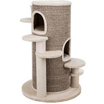 Ein eleganter Kratzbaum aus Holz mit robustem Sisal, der Katzen zum Klettern und Spielen einlädt. Mit einer Höhe von 110 cm bietet er viel Raum für Streicheln und Entspannung, während die weiße und taupe Farbgebung sich harmonisch in jedes Zuhause einfügt.