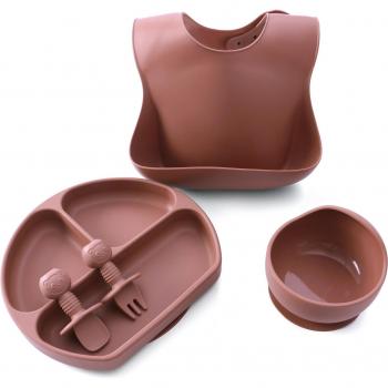Baby-Fütterungsset aus Silikon - 5 Stück Geschirr, lätzchen und Besteck
