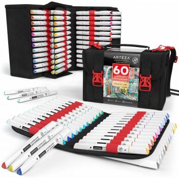 ARTEZA EverBlend Twinmarker, 60 Farben, Doppelspitzen, 1 Blender Marker, alkoholbasierte Marker, Set mit Tragetasche