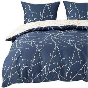 Mikrofaser Bettwäsche Bedsure 135x200 – Navy, Zweig-Print, 2-teilig