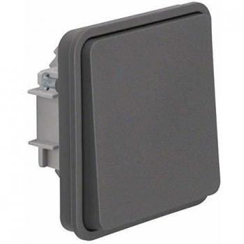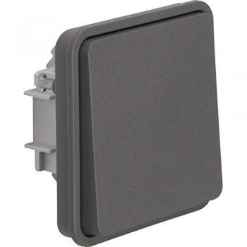 Ein kompakter, beleuchteter Taster-Einsatz in Lichtgrau mit integrierter Wippe, der als zuverlässiger Wechsler dient; er verfügt über IP55‑Wasserbeständigkeit und lässt sich einfach montieren.