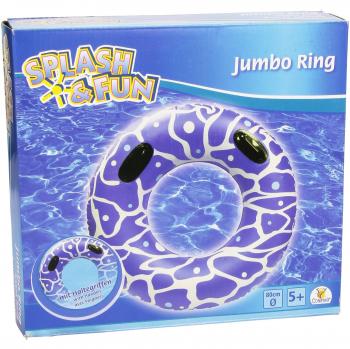 Ein großer, bunter Schwimmring mit runden Griffflächen aus strapazierfähigem Vinyl, der ab zwölf Jahren sicheren Halt bietet und sich blitzschnell aufpumpen lässt – ideal für Pool oder Strand.