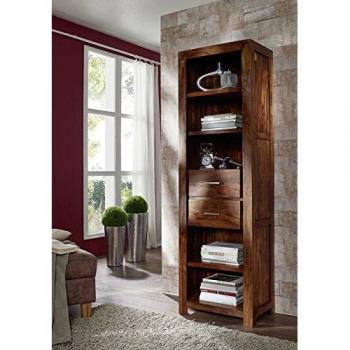 Ein handgefertigtes Regal aus Sheesham-Holz, geölt in sanftem Grau, misst 56 × 45 × 145 cm und bietet drei großzügige Fächer für Bücher oder Dekor; die klassische Kolonialform verleiht jedem Raum ein warmes, rustikales Flair.
