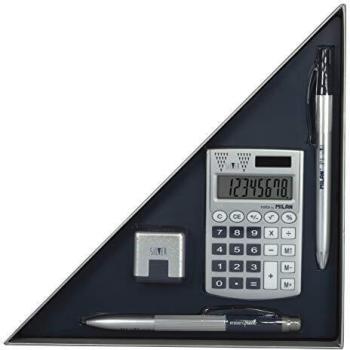 Geschenkpaket "Milano Blue": Taschenrechner + Schreibwerkzeug + Hülle