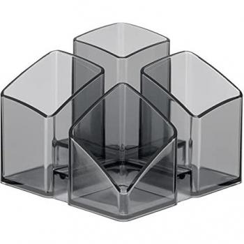 HAN Schreibtischorganizer SCALA – eleganter Köcher mit 4 Fächern und Kartenständer, transparent-grau