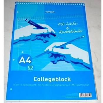 Collegeblock A4 liniert für Links- und Rechtshänder, Spiralbindung oben