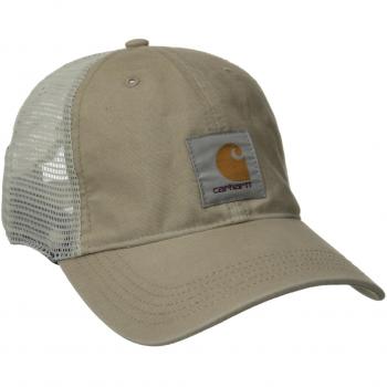 Schwarze Carhartt Buffalo Cap aus strapazierfähigem Baumwoll‑Duck, ausgestattet mit atmungsaktivem Netzgewebe hinten, einer verstellbaren Kordel für individuellen Sitz und wasserabweisender Beschichtung – ein klassisches, langlebiges Design in Einheitsgröße.