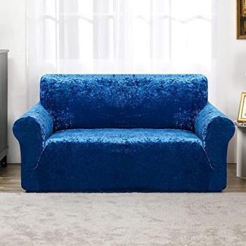 Deconovo Samt Couchbezug, elastische Stretch Sofabezug für 2-Sitzer, weiche Abdeckung in Blau