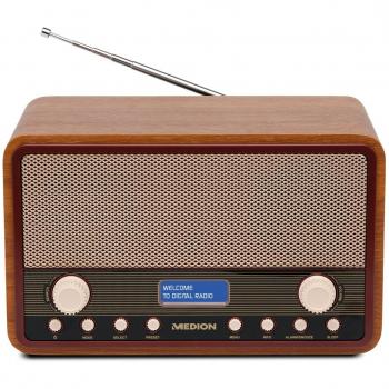 E66312 Medion DAB+ Radio – 20‑Sender-Speicher, Netz- oder Batteriebetrieb, Teleskopantenne – Braunfarbig