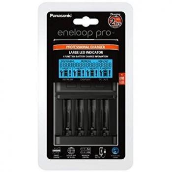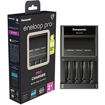 Panasonic eneloop Pro Ladegerät with USB Output für 1-4 AA/AAA NI-MH-Akkus, mit USB-Anschluss, LCD-Display, Auffrischfunktion und 10 Sicherheitsfunktionen, black