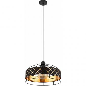 Pendellampe Hängelampe schwarz Esstisch goldfarben rund Wohnzimmerleuchte, Textil Metall schwarz, 1x E27 Fassung, DxH 38x120 cm