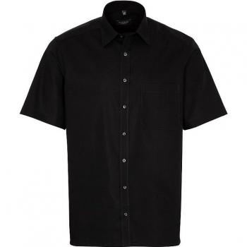 Ein leichtes, hellblaues Kurzarmhemd aus Popeline mit lockerer Passform; die atmungsaktive Baumwolle sorgt für angenehmen Tragekomfort und verhindert Faltenbildung, sodass es jederzeit gebügelfrei getragen werden kann.