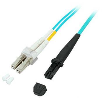 Ein kompakter 1 m‑Patchkabel mit LC‑Steckern, E‑2000‑APC‑Enden und 62,5/125 µm‑Kern, das dank seiner leuchtenden Türkisfarbe sofort ins Auge fällt und sich leicht in komplexe Netzwerke einbinden lässt.