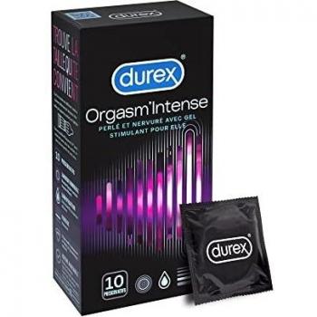 Durex - Intense Orgasmic Kondome, Gerippte und Genoppte Strukturen mit Stimulationsgel zur Erhöhung der weiblichen Befriedigung, 1er Pack (1 x 10 Stück)