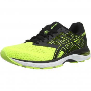 Der Asics Gel‑Zaraca 4 GS in leuchtendem Gelb besticht durch ein luftdurchlässiges Mesh, das den Fuß kühl hält, und die charakteristische Gel‑Dämpfung für weiche Sprünge; eine rutschfeste Gummisohle sorgt dabei für sicheren Halt auf Asphalt und leichtem Trail.