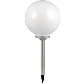 Eine solarbetriebene RGB‑LED-Lampe in einer glänzenden Glaskugel, die sich per Steckdose anschließt und mit lebendigen Farbwechseln für ein modernes Ambiente sorgt; wetterfest nach IP44, perfekt für Garten oder Balkon.